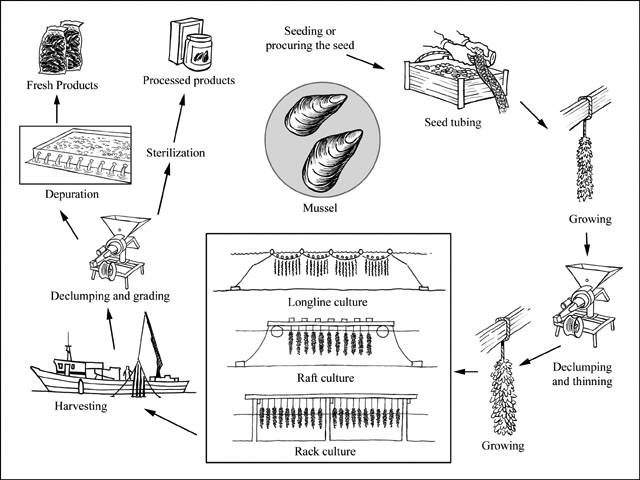 Production cycle of Mytilus galloprovincialis. Source: FAO